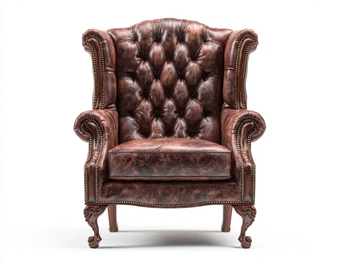Ledersessel-Echtleder-Holz-90x82x106 cm-Braun-Antiker Stil
