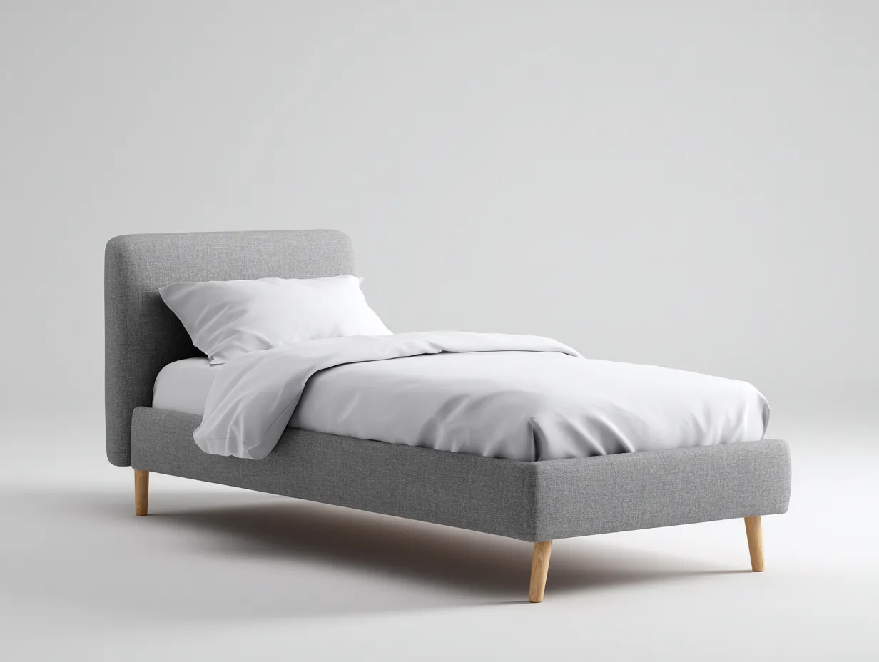 Einzelbett-Stoff-Holz-214x104x116 cm-Grau-Moderner Stil