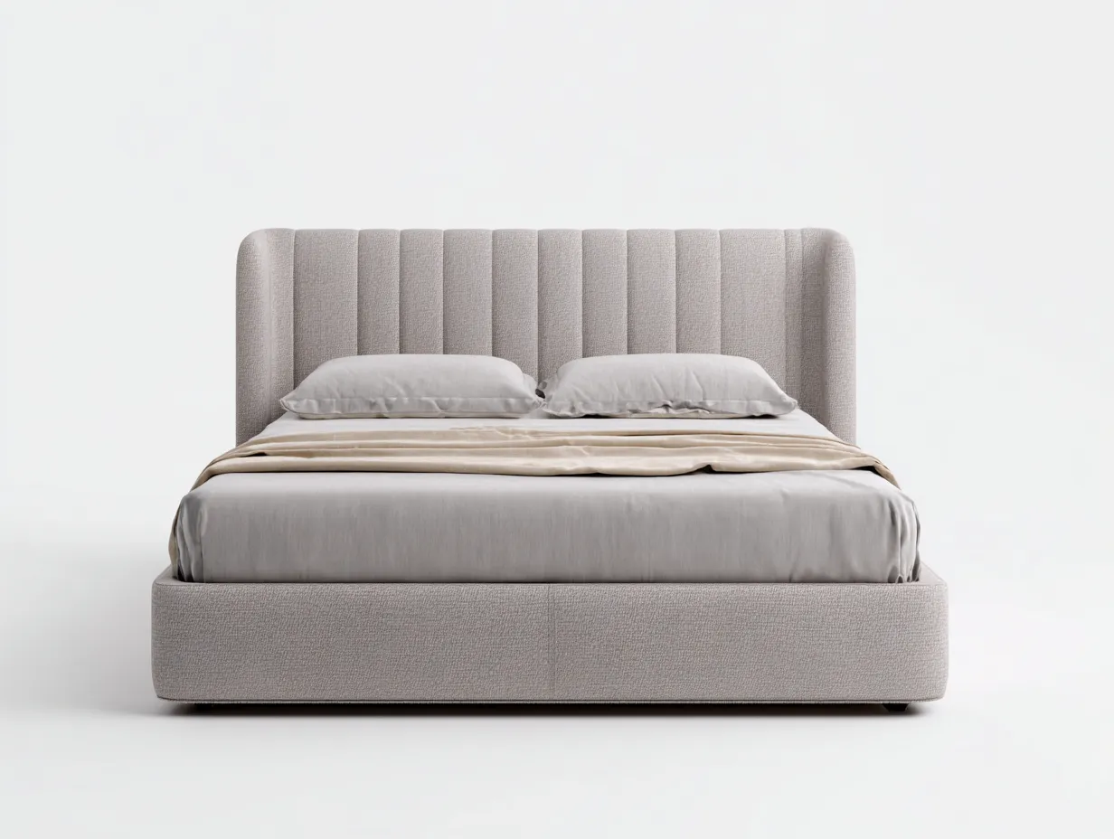Doppelbett-Stoff-Holz-216x196x118 cm-Hellgrau-Moderner Stil