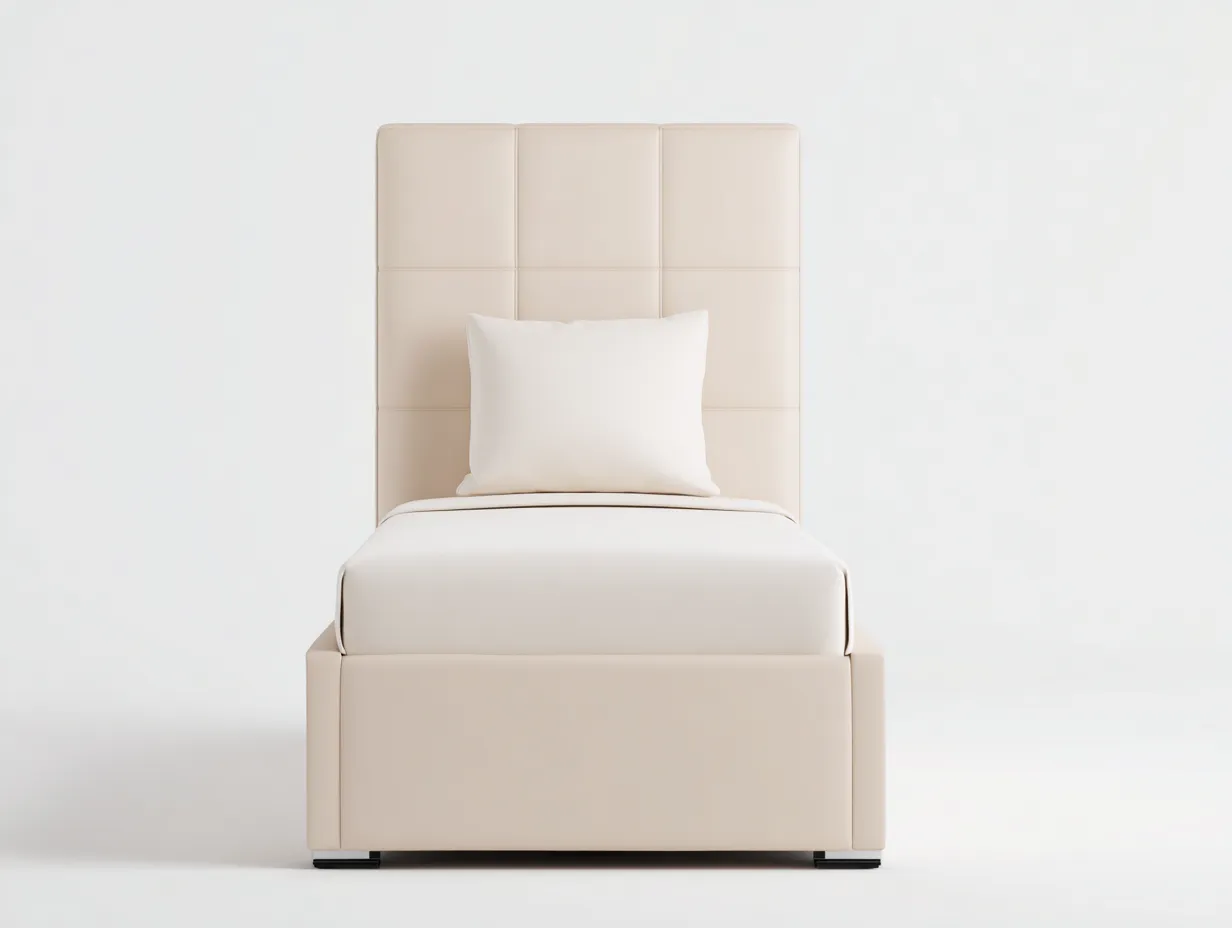 Einzelbett-Kunstleder-Holz-210x100x120 cm-Beige-Moderner Stil