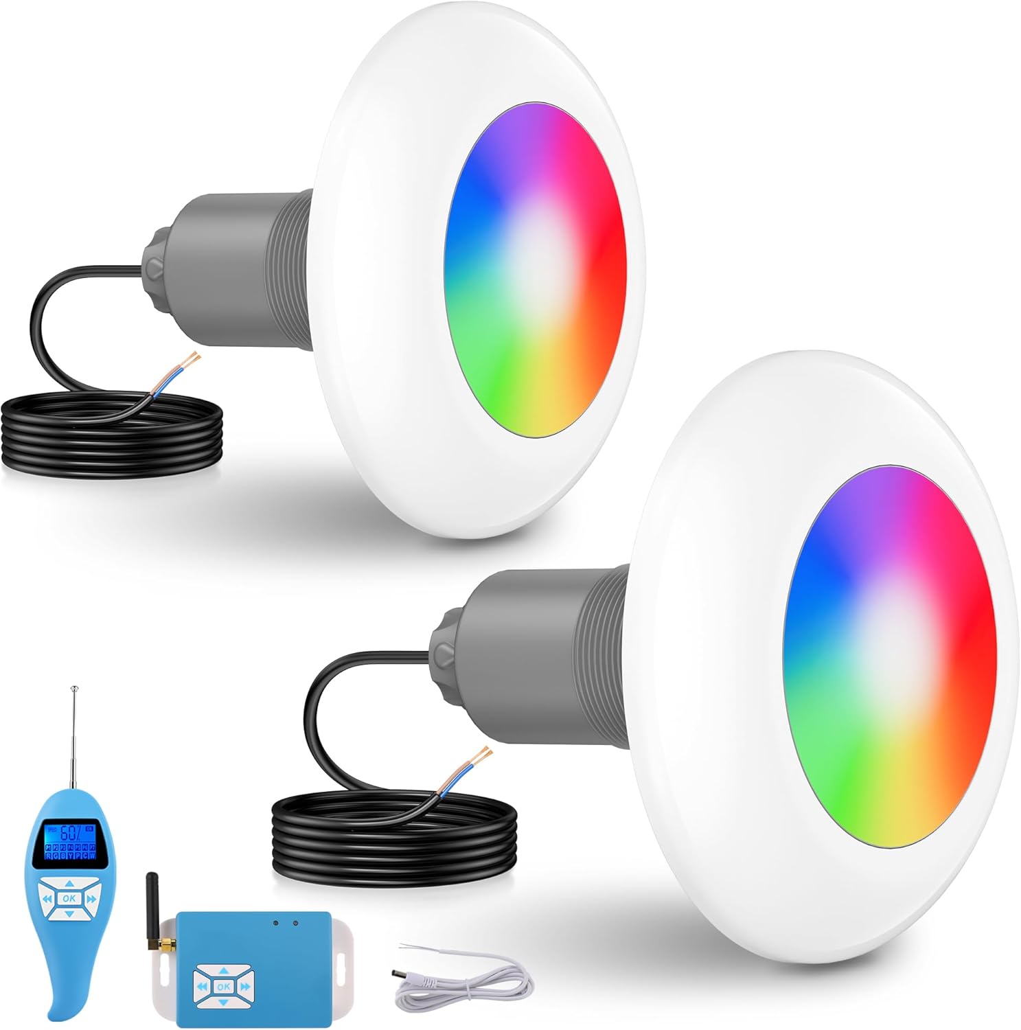 LED Poolbeleuchtung mit 1,5 Außengewinde, 25W Harz Gefüllt RGB Mehrfarbig Poolscheinwerfer mit Fernbedienung, Durchmesser 242mm, 12V AC Poollampe für Einbaunische 1 1/2 Zoll der Beckenwand,2 Stück
