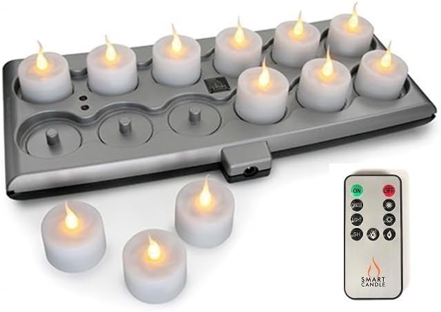 Led Teelichter wiederaufladbar mit Fernbedienung und Ladestation, elektrische Led-Kerzen, Flackernde Kerze ohne Flamme wasserdicht auch für Outdoor, Teelicht aufladbar 12 Stück