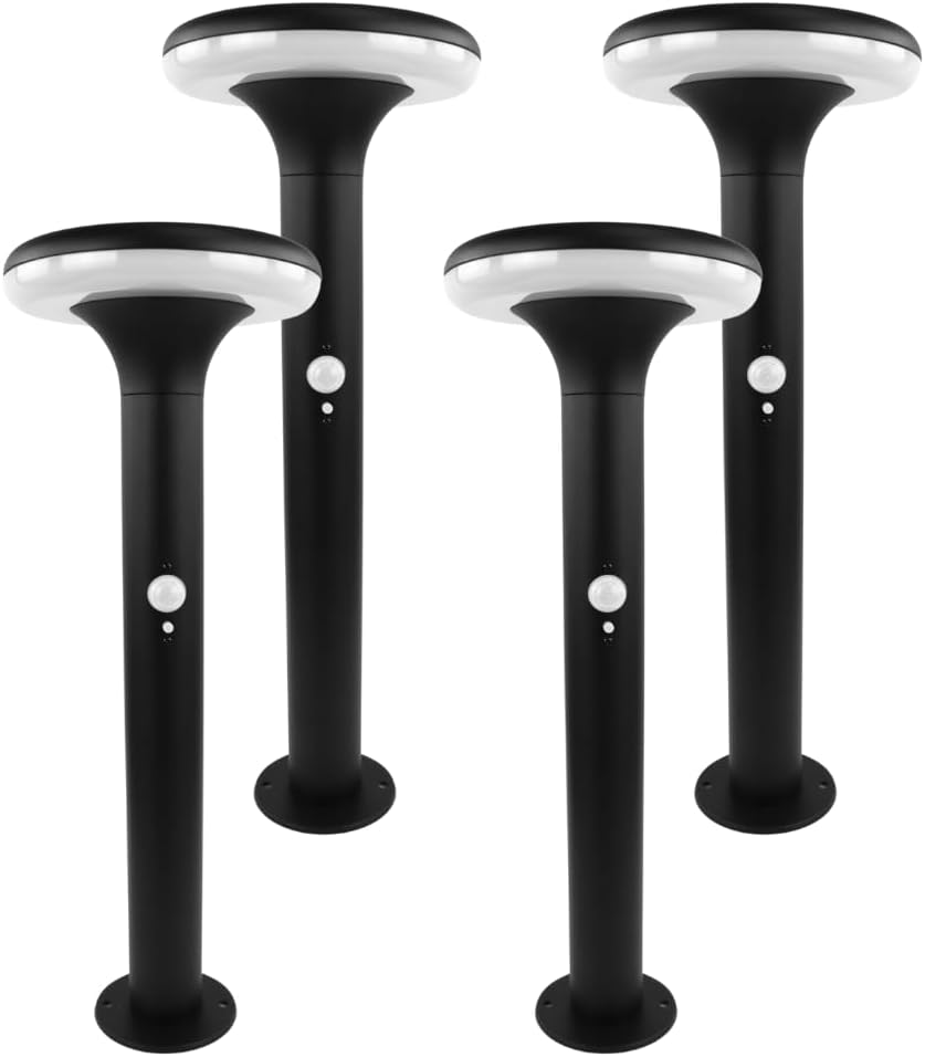 4er Set Solar Wegeleuchte mit Bewegungsmelder - 3 Lichtmodi - 3000K Warmweiß - IP54 wetterfest - Aluminium - runde LED Außenleuchte Pollerleuchte Garten Terrasse