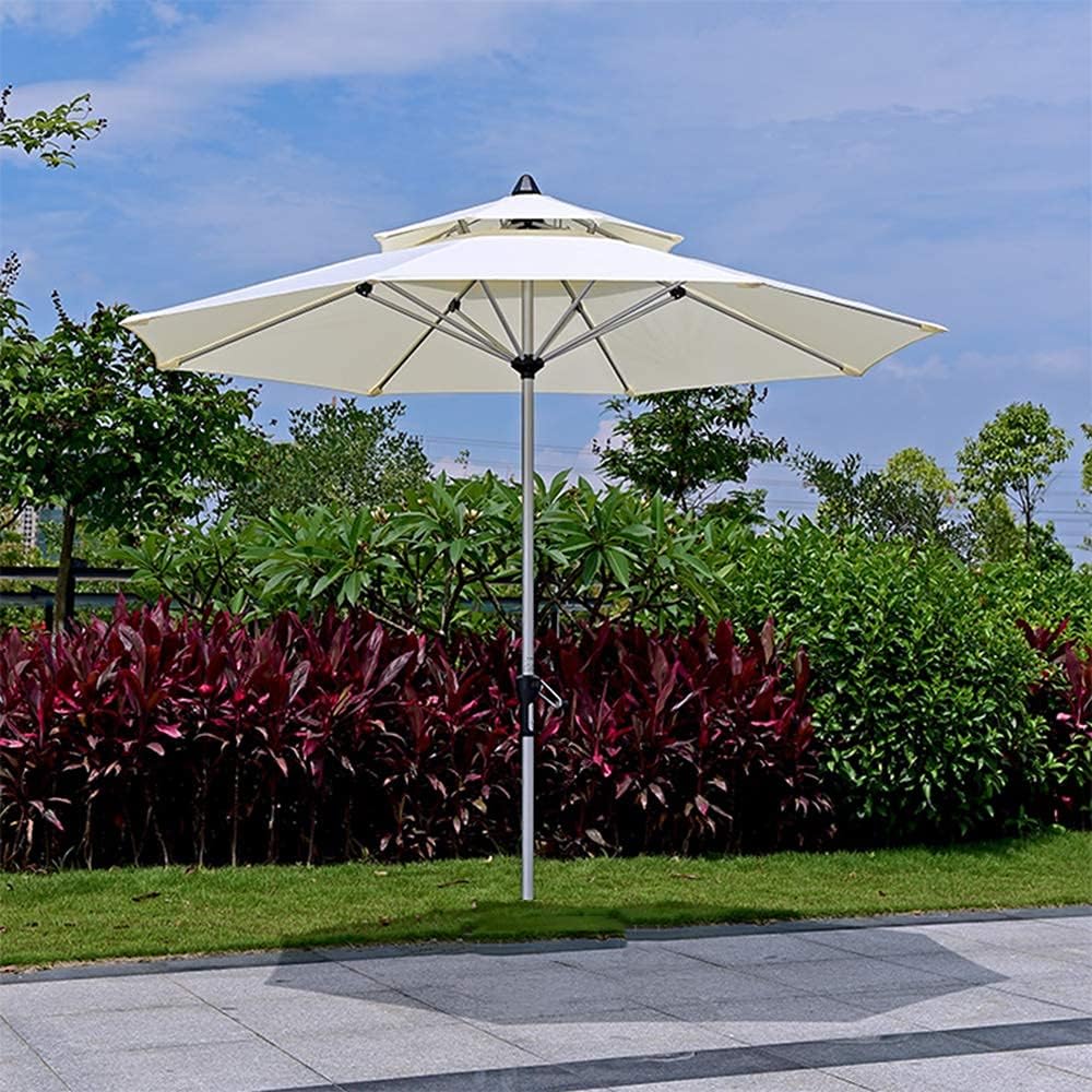 2,7 m Garten, runder Sonnenschirm, UV-Schutz, leichter Regenschutz, mit Kurbel, doppeltem Baldachin, Stange und Rippen aus Aluminiumlegierung, Basis nicht im Lieferumfang enthalten, für Balkon,