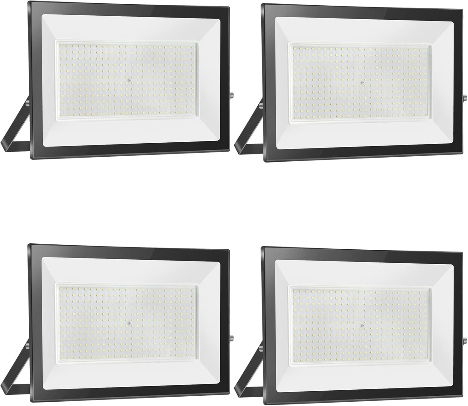 4er 300W LED Strahler Außen, 30000LM Superhell LED Scheiwerfer Fluter Flutlicht, 3000K Warmweiß Industriestrahler, IP66 wasserdicht Außenlampe, LED Außenstrahler für Gärten Garage Flur Außenbereich