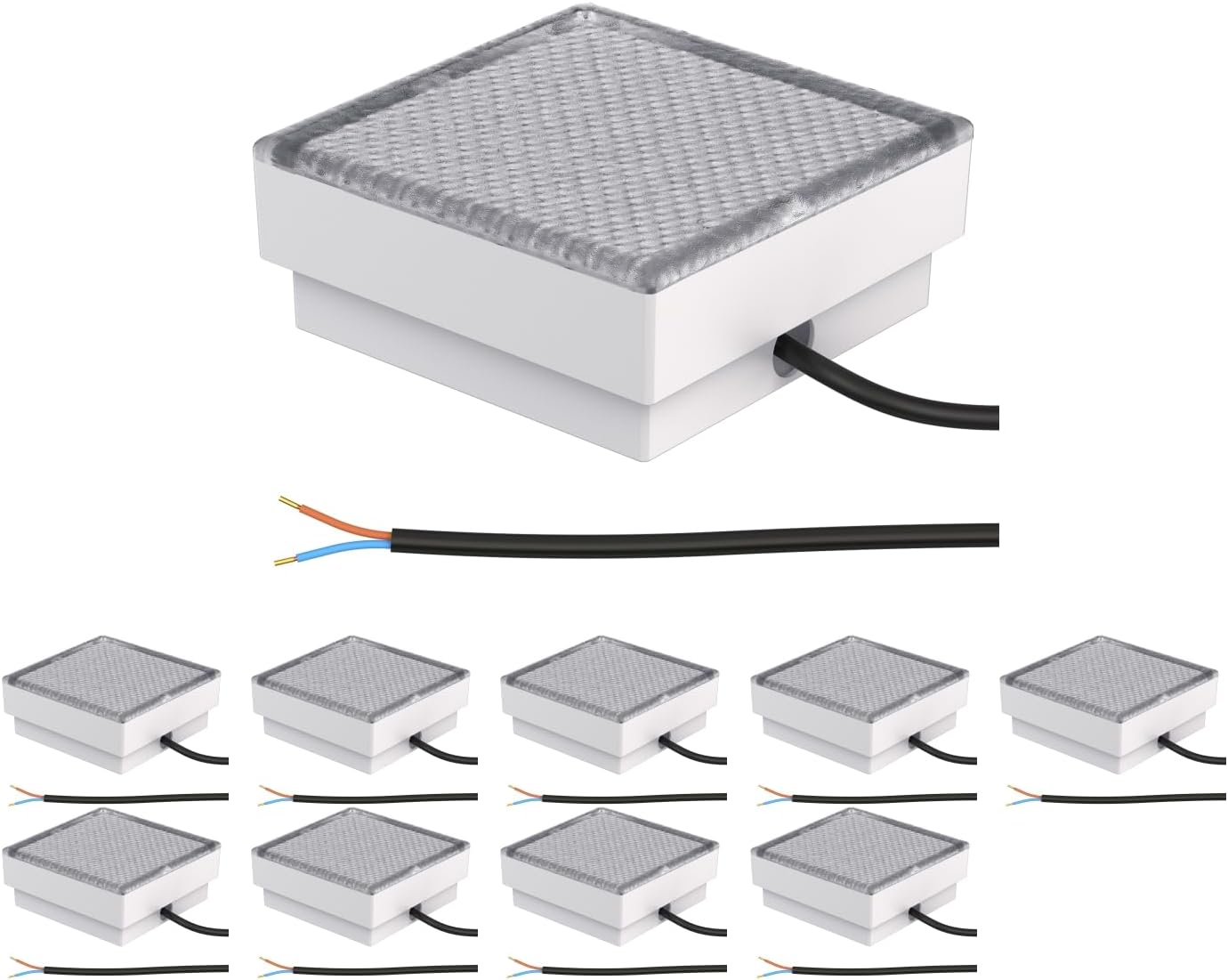 ledscom.de 10 Stück LED Pflasterstein Bodeneinbauleuchte CUS für außen, IP67, eckig, 15 x 15cm, warmweiß
