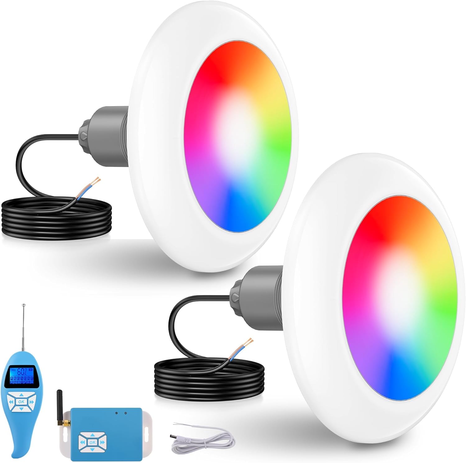 LyLmLe LED Poolscheinwerfer mit Außengewinde 2, 25W RGB Poolbeleuchtung mit Controller und Fernbedienung, 1000lm, Durchmesser 242mm, 12VAC Pool Lampe für GFK Fertigbecken Aufstellbecken Holzpool, 2er-Set