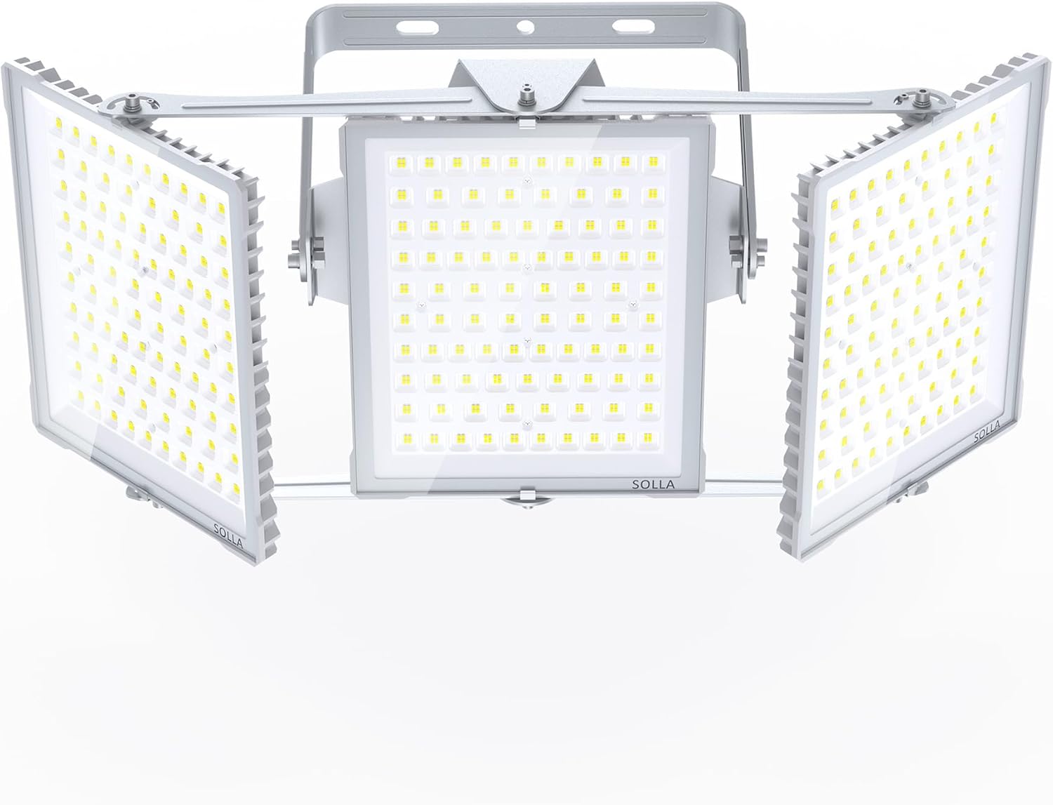 SOLLA 750W 2025 Plus Neue Aufrüstung LED Außenflutlicht, 75000LM 6000K Tageslichtweiß IP66 Wasserdicht, Stadionbeleuchtung, 3 Köpfe Verstellbares Außen-Sicherheitsbeleuchtung für Höfe, Terrassen-Grau